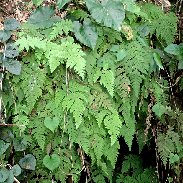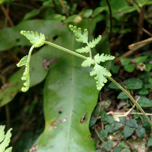 側脈は赤矢印のところでとなり同士がくっつく。 これが繰り返されて一列の網目をつくり、 太い脈の両脇に1本の長い線があるように見える。