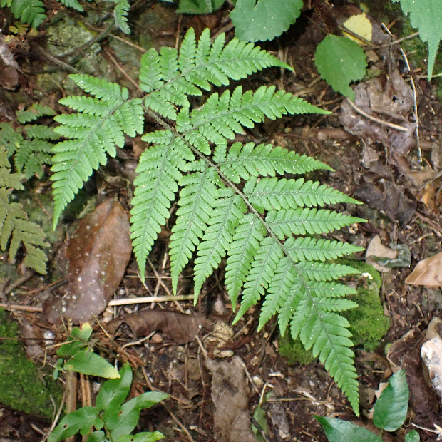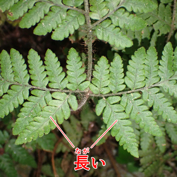 カツモウイノデの仲間のシダで、 大きく開いた茶色っぽい鱗片をたくさんつけます。 名前は洞穴のような薄暗いところによく生えることに由来し、 色合いも黒っぽい感じです。 一方で、 白っぽい岩である石灰岩地を好む傾向があります。