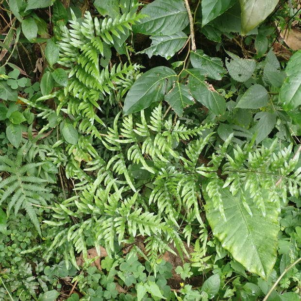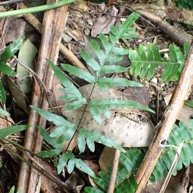 のっぺりとした葉が印象的な南方系のシダです。 屋久島や琉球列島の林縁でふつうに見られます。 名前の通りアマクサシダよりも大きくて幅広くなります。 アマクサシダと違って熊本県の天草、 そもそも九州に分布していません。