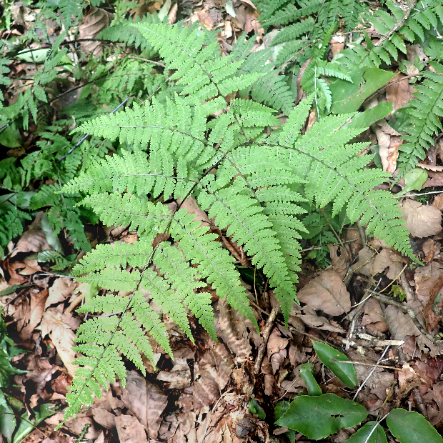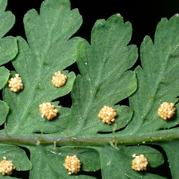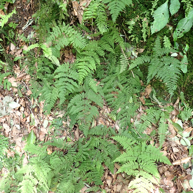 暖かい地域に生えるシダ。 葉質は薄くて細かく裂けるので、 やさしいな感じがします。 葉柄は黒くて、 白っぽい鱗片が多くつくのでその対比がきれいです。 ヒメシダ科のヒメワラビとは別のグループに属します。