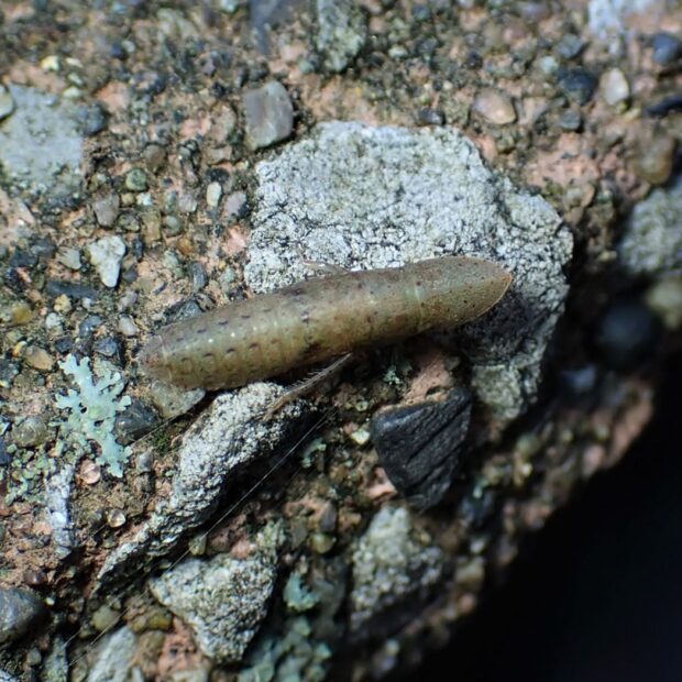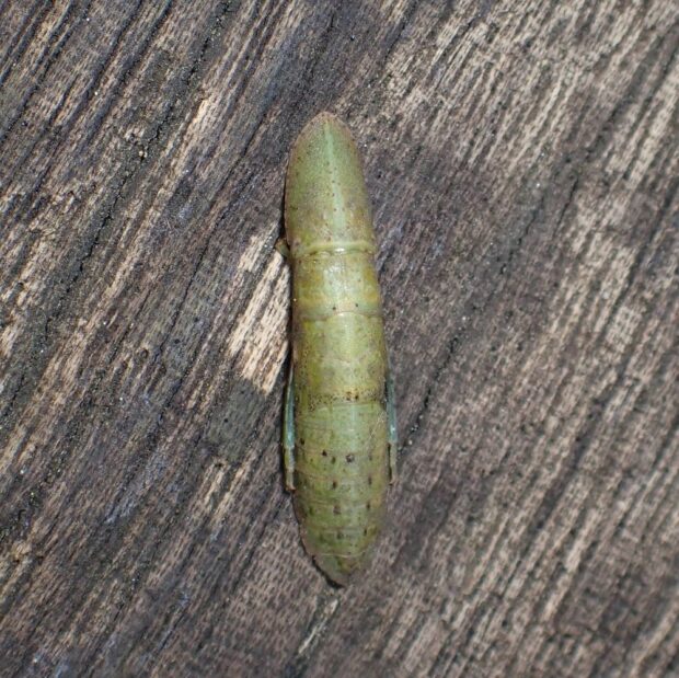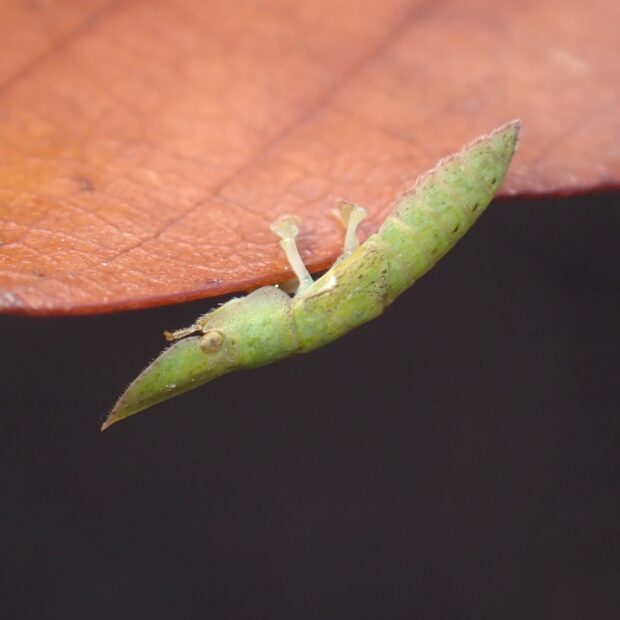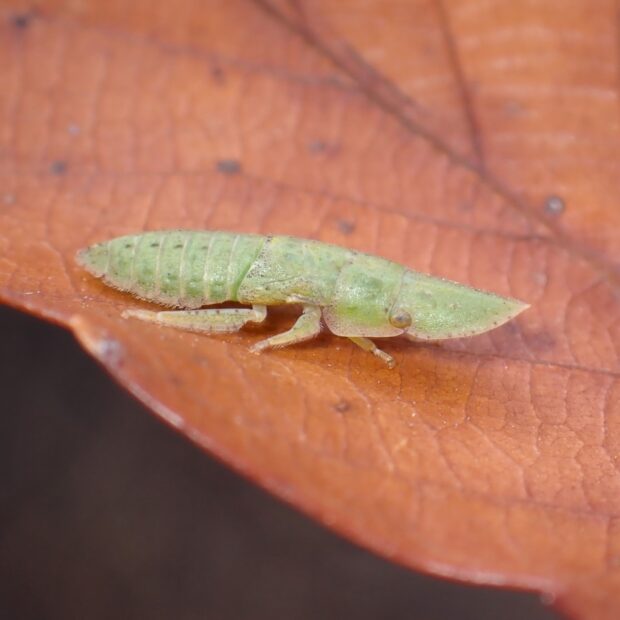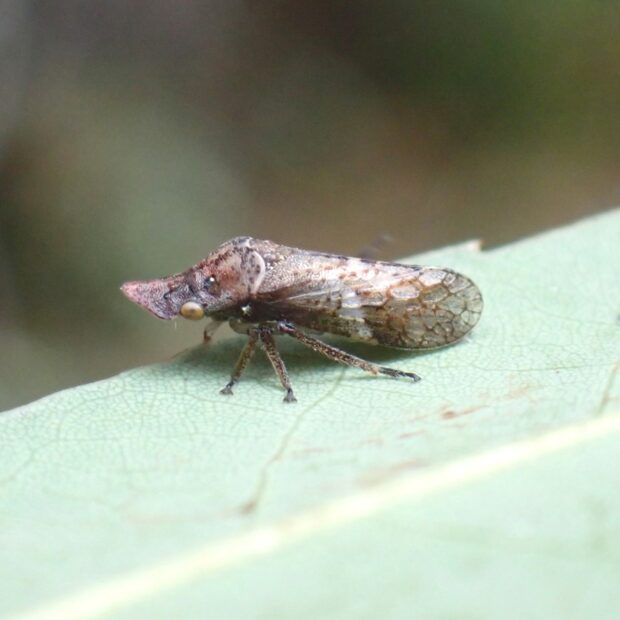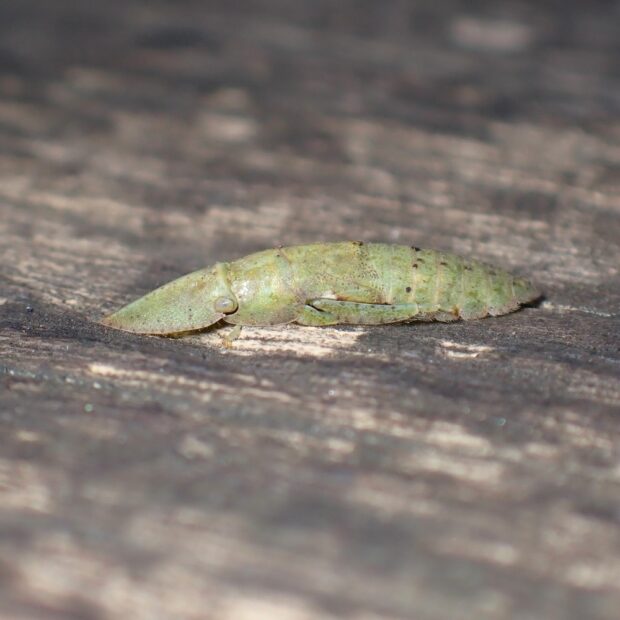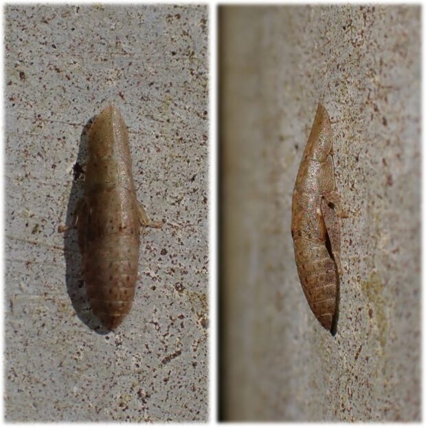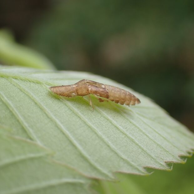 鳥ではなくヨコバイの仲間。 頭がへら状で反り返っています。 ミミズクに似ていますが、 コミミズクには耳のような突起がありません。 幼虫は、 枝に密着して越冬します。