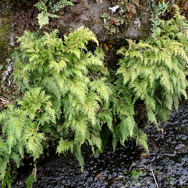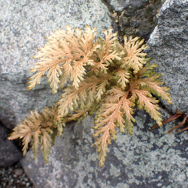 本来なら日本では沖縄にのみ生えるシダ植物ですが、 園芸用として持ち込まれた結果、 広く野生化しました。 別種のカタヒバと違って枝先に無性芽をつけ、 これが落ちることによっても数を増やします。 また、 世界で初めて全ての遺伝子情報(ゲノム)の解読に成功したシダ植物としても有名です。