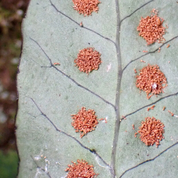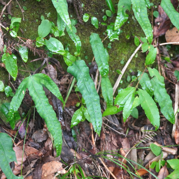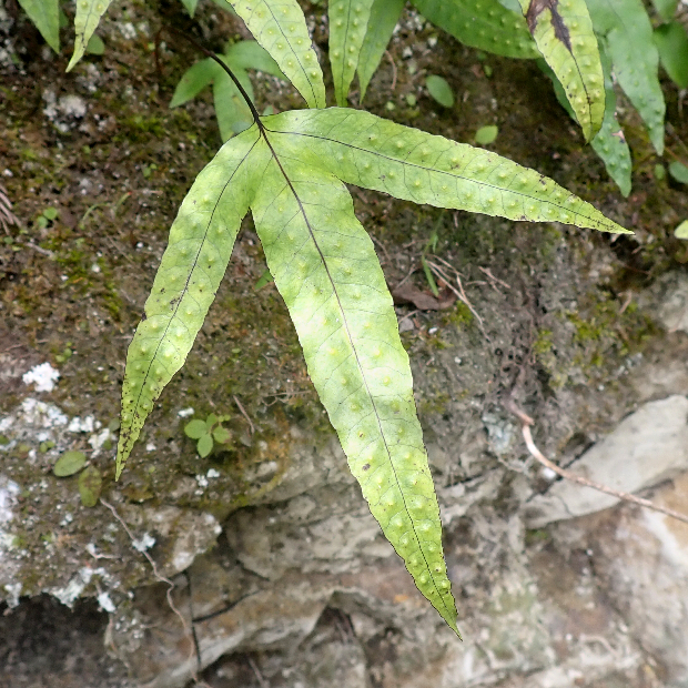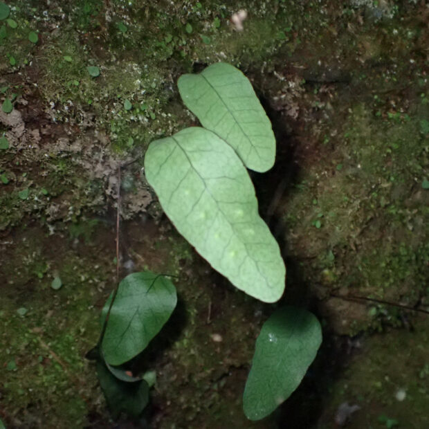 斜面によく生えている小さめのシダです。 大きな葉では名前の通り3つの切れ込みがありますが、 小さめの葉では切れ込みが2つ、 無いなど変化が大きいです。 特に小さい葉は丸みがあってかわいらしいです。