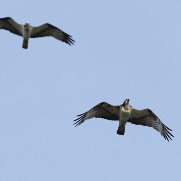 海や湖、 川などで一年中見ることができます。 一見タカの仲間とは思えないほど細長い翼が特徴です。