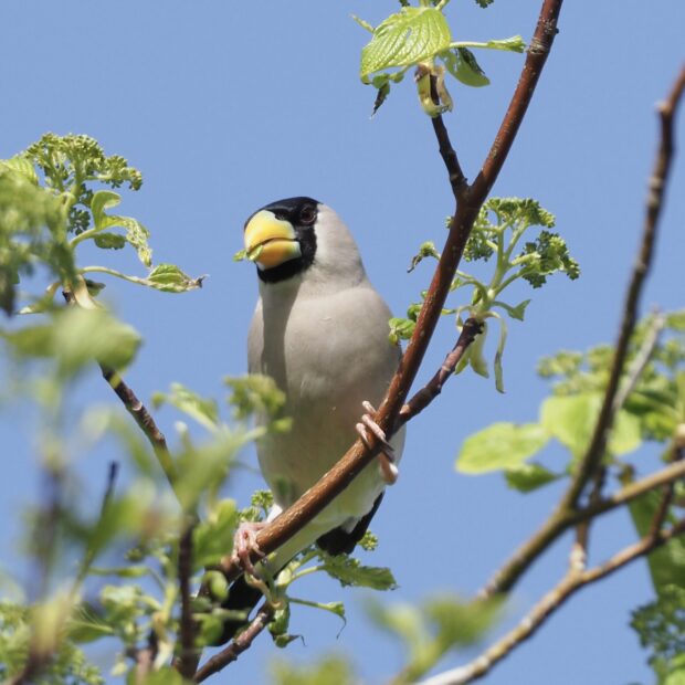 基本的には群れで行動し、 樹上で木の実や木の芽を採食しますが、 地面におりて採食する場合もあります。