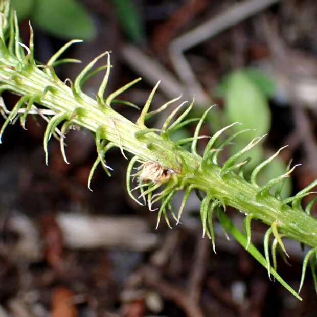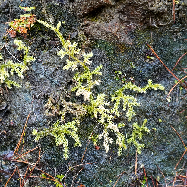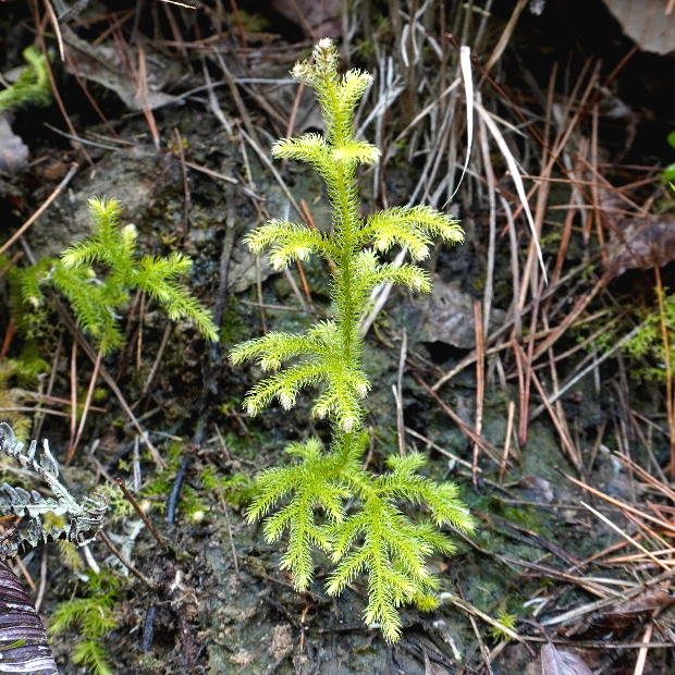 暖かい地域に多いヒカゲノカズラの仲間のシダ植物。 直立茎の枝先からは胞子のう穂をたくさん垂らします。 名前は湿った場所を好み、 スギに似ていることに由来します。