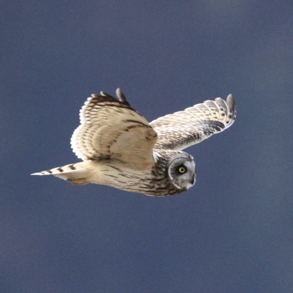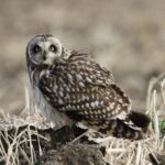 草原を飛び回るフクロウの仲間