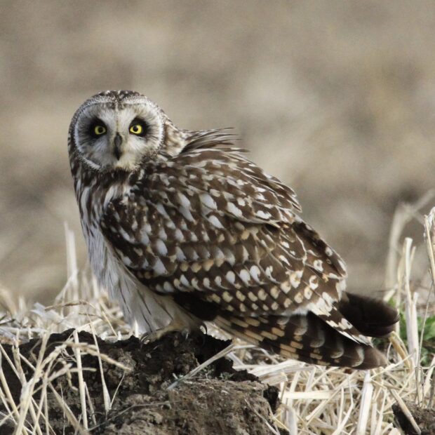 日中は地面などで休憩をしていて、 夕方になると飛び始めます。 草原や畑の上を飛び回り、 ネズミの仲間をとって食べます。