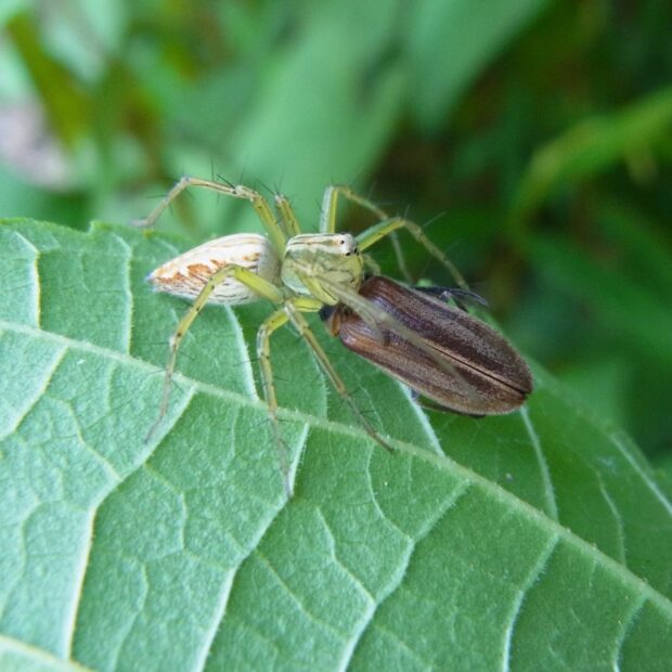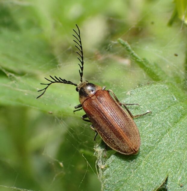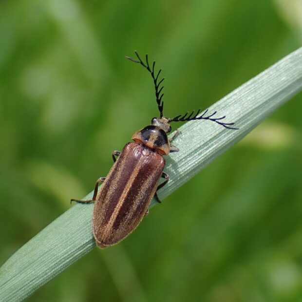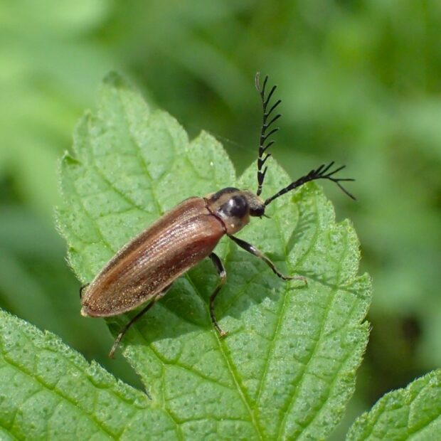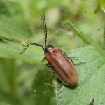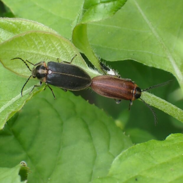 ナガハナノミの仲間では最も普通に見られる代表種。 幼虫は水中、 成虫は水辺の近くの陸で生活します。 成虫は水辺の近くの葉の上にとまります。
