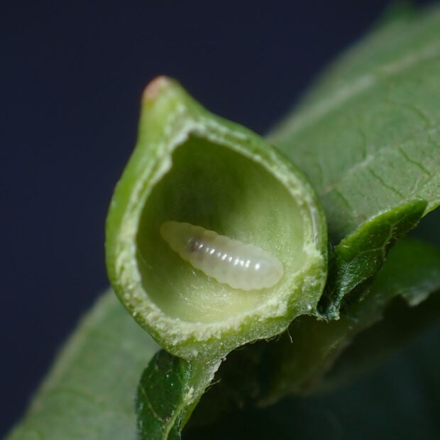 • 虫こぶの中は空洞があり、 幼虫が1匹いる。