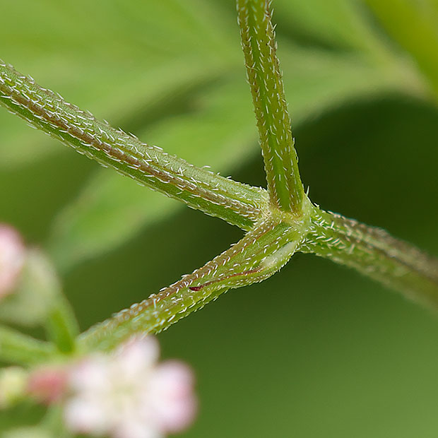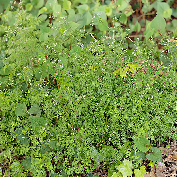実はひっつき虫になります。 やぶを歩くと、 オヤブジラミの実が服について、 シラミがたかったようになります。 ヤブジラミににています。 オヤブジラミはヤブジラミより花の根もとの柄が長く、 となりの花と離れて咲き、 花びらが小さいので地味な印象です。 花は1カ月ほどはやく咲きます。