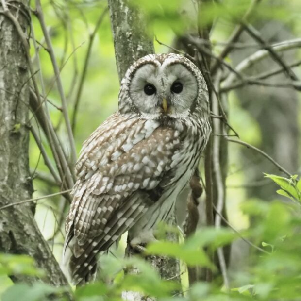 春から夏にかけて、 「ホーホウ、 ゴロスケゴゥホウ」と鳴きます。