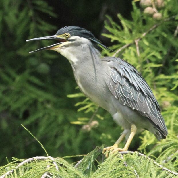 夏鳥として河川や水田などにやってきます。 主に夕方に活動し、 浅瀬で魚を待ち伏せてとります。 小さな虫を水に流して魚を誘き寄せてとる個体もいます。