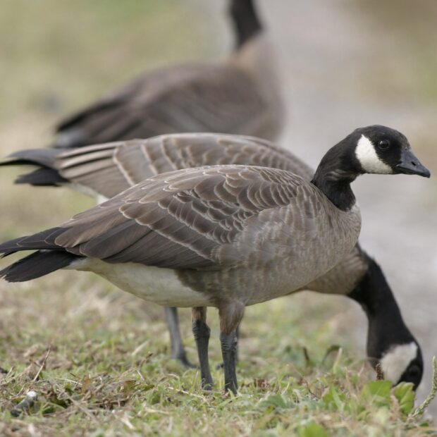 局所的に半野生化していて、 シジュウカラガンと非常に似ているカナダガンはより大型であることで見分けられます。