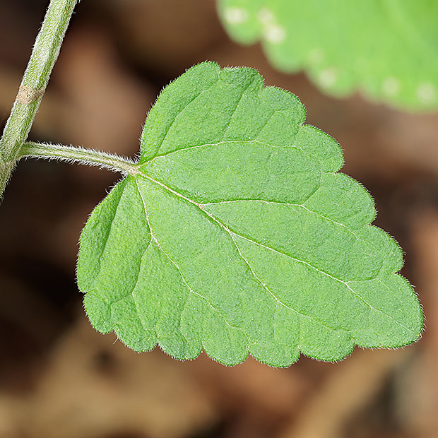 林でみられるタツナミソウ属の仲間です。 茎に下向きの曲がった毛をもつことが特徴です。