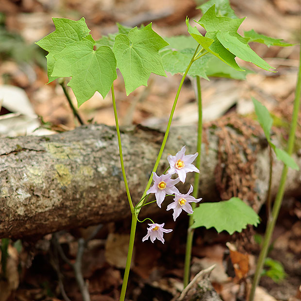 Podophyllumはミヤオソウ属のことですが、 日本に自生する種はありません。 ミヤオソウは中国原産で、 八角蓮(ハッカクレン)の名で植栽されていることがあります。