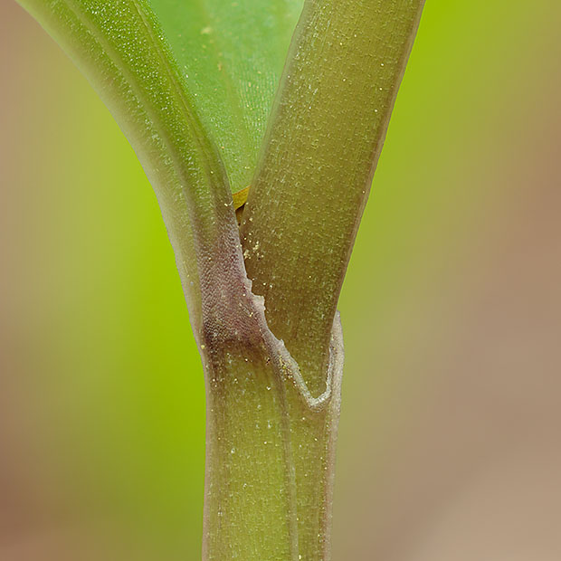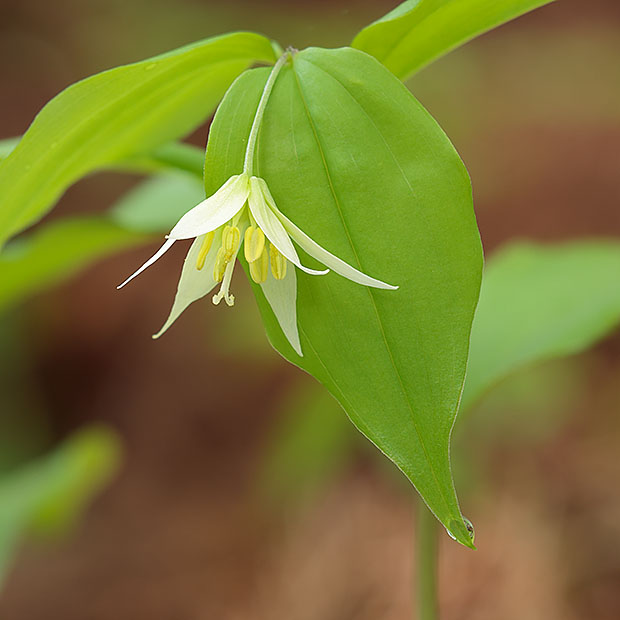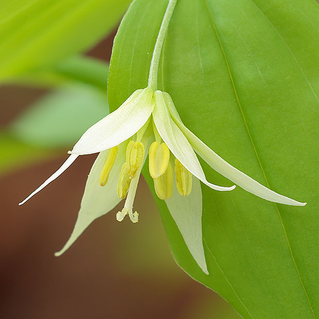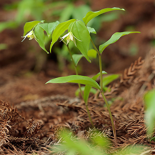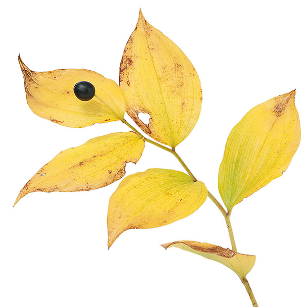 山地の明るい林内で、 うつむいて白い花をさかせます。 秋になると球形の黒い実をつけます。