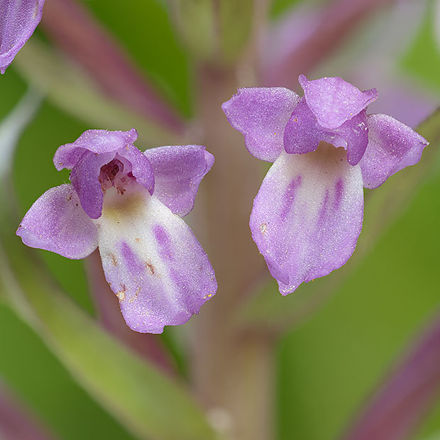 地中に太い根を伸ばします。 濃いピンク色の花をたくさん咲かせます。 花の正面は鳥が羽ばたく姿に見えます。