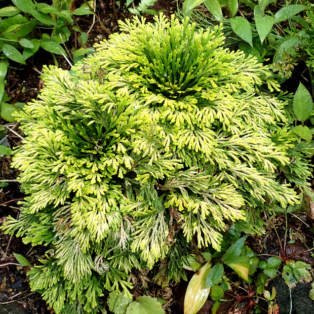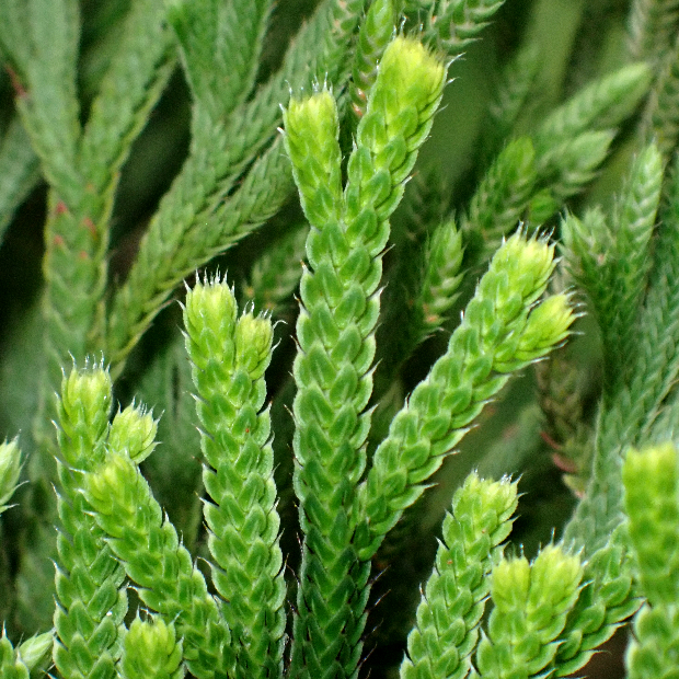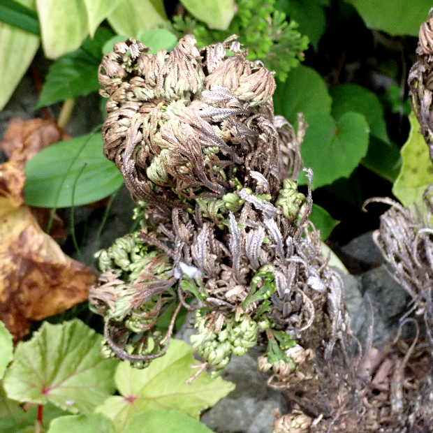 岩場に生える檜葉(ひば : ヒノキの仲間)のような形のシダ植物です。 中心からたくさんの枝を広げ、 そこに小さな葉をびっしりつけます。 日照りが続くと葉を丸めて水が出ていくのを防ぎます。