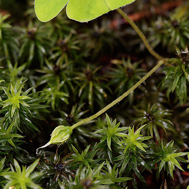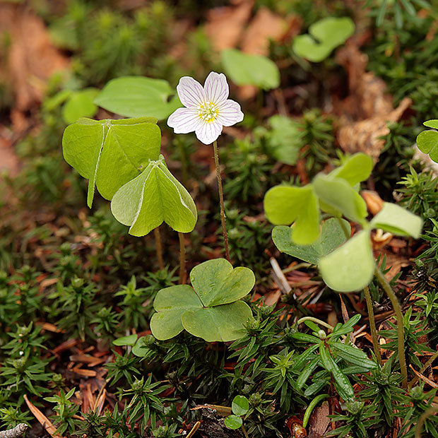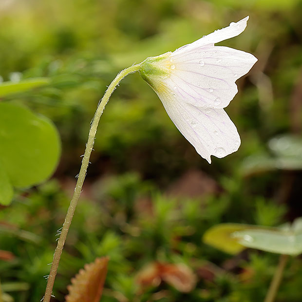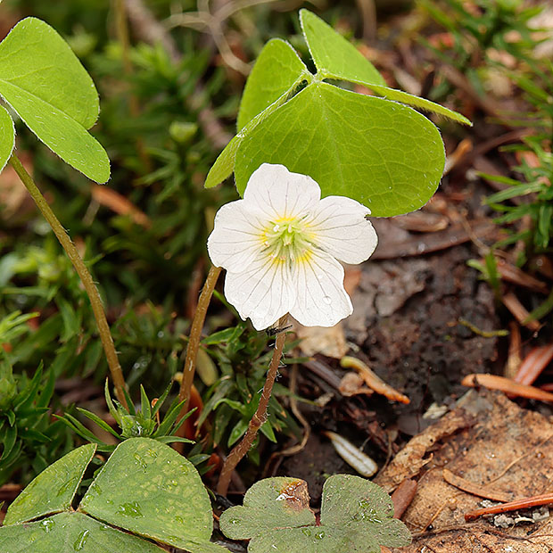 亜高山の針葉樹林で白色の花を咲かせます。 花をよく見ると、 ピンク色の筋があり、 中心部は黄色を帯びています。