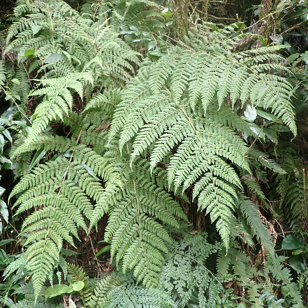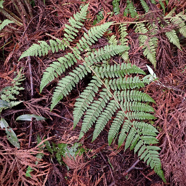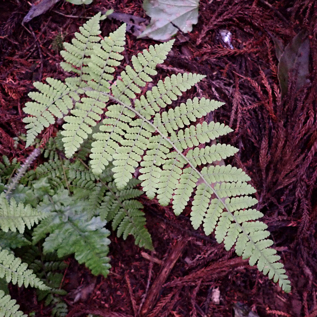 暖かい地域の林内に多い大きめのシダです。 別名をシラガシダというように、 葉柄に白っぽい鱗片をたくさんつけます。 名前は千葉県の清澄山(きよすみやま)で見いだされたことと、 ヒメワラビに似ていることに由来します。