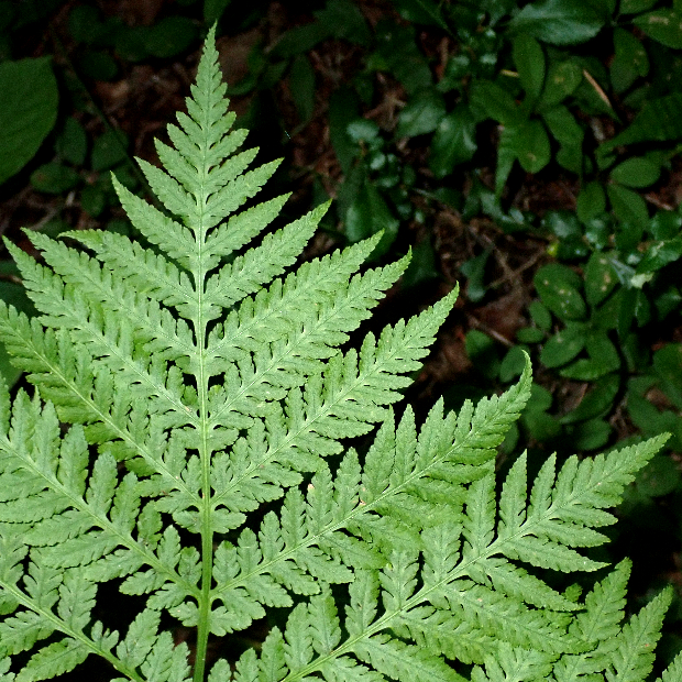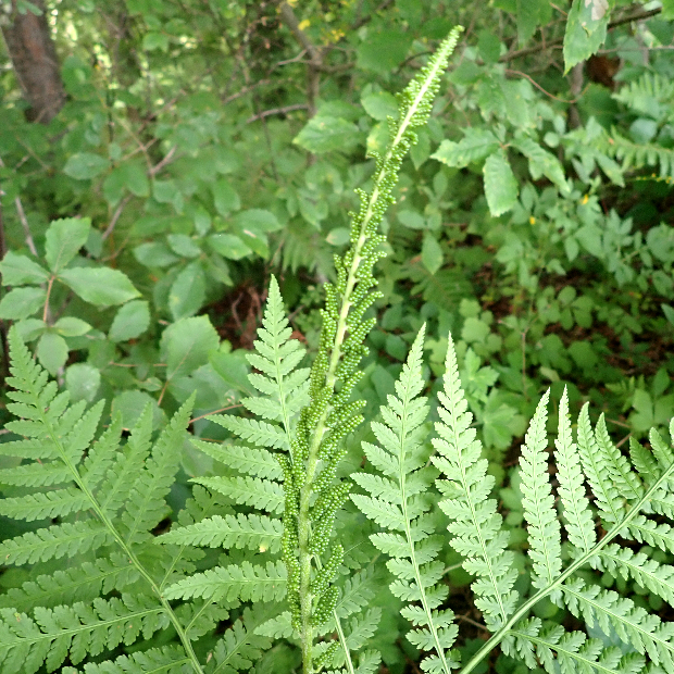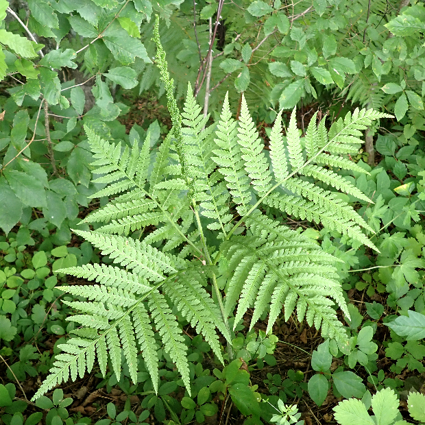 落葉樹林やスギ林の土上に生えるシダ。 花が咲いているような姿が特徴で、 夏頃に葉を出します。 名前に反してナツノハナワラビと胞子葉は同じくらいの長さですが、 横にあまり広がず細い感じに出ます。
