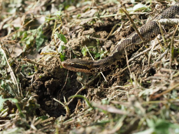 毒ヘビなので、 見つけても手を出さないようにしてください。
