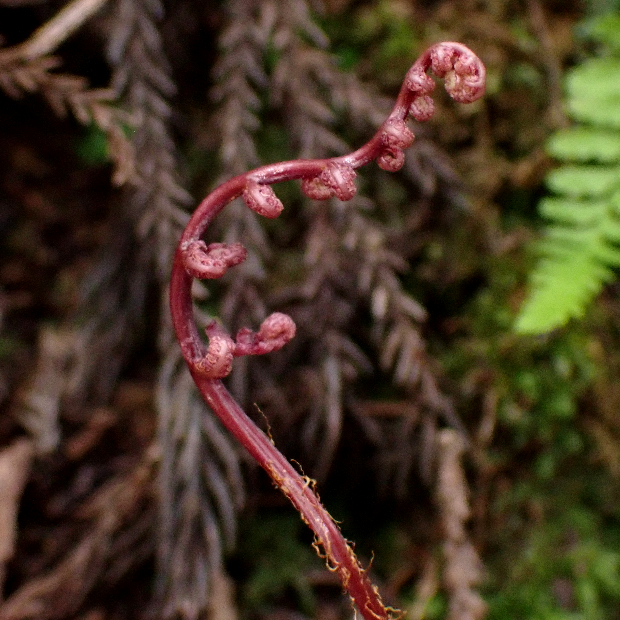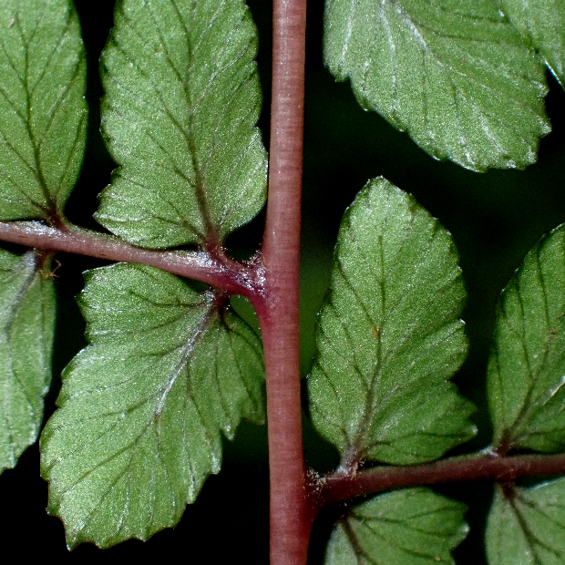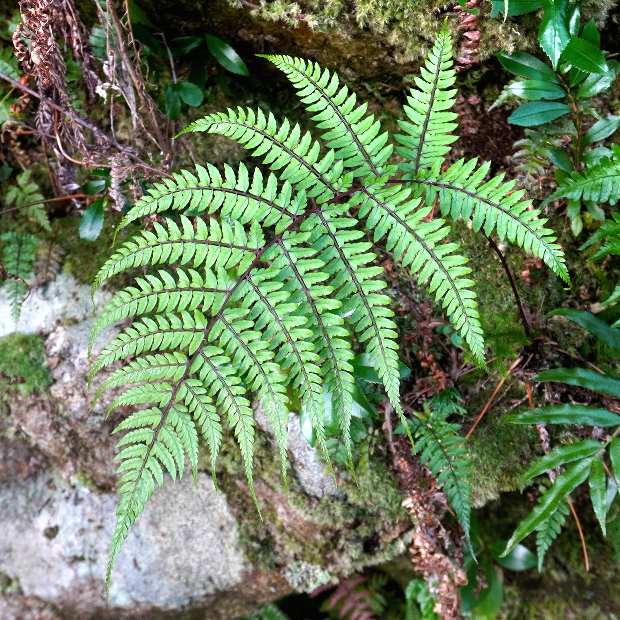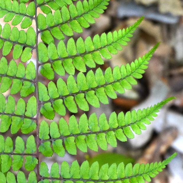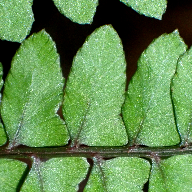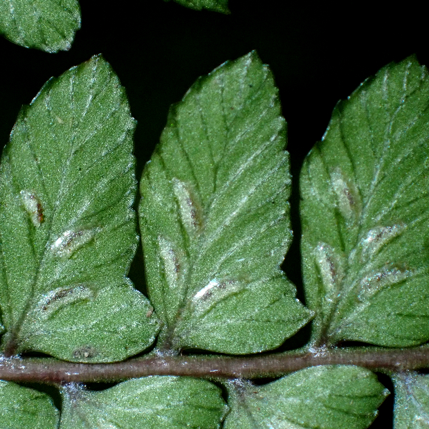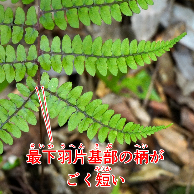 胞子のう群は楕円形で、 少しカマ状のことがある。 中心の脈寄りにつける。
