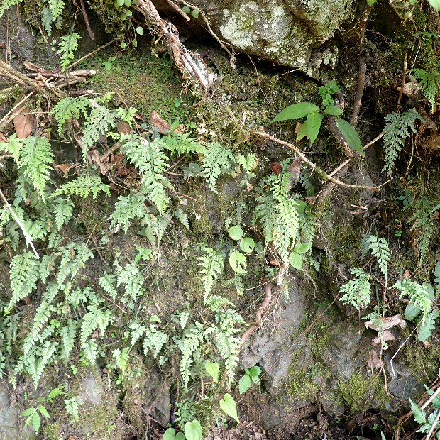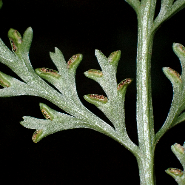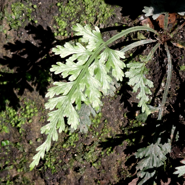 暖かい地域の岩の上などに生えるシダ。 葉はやや厚みがあって、 やわらかいです。 小さな切れ込みごとに胞子のう群をつけます。 名前の神崎(こうざき)はどこの地名かはっきりとわかっていません。