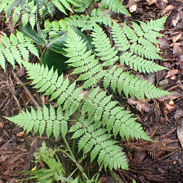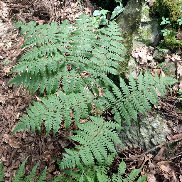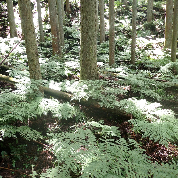 林内に生える巨大なシダです。 葉はくすんだ緑色をしていて、 草っぽくてやわらかめです。 近い仲間のヒカゲワラビよりもさらに大きく、 いかにも鬼という風格です。