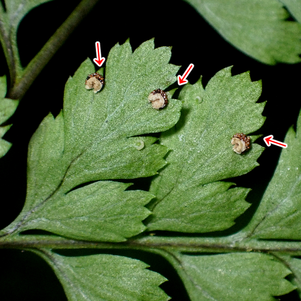 栃木県の男体山(なんたいさん)に由来するシダです。 胞子のう群の先の葉のフチがとがるのが1つの特徴です。 あまり分類が安定していなかったシダですが、 現在はオシダの仲間であるとする考えが有力です。