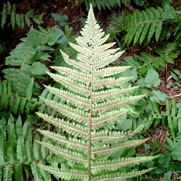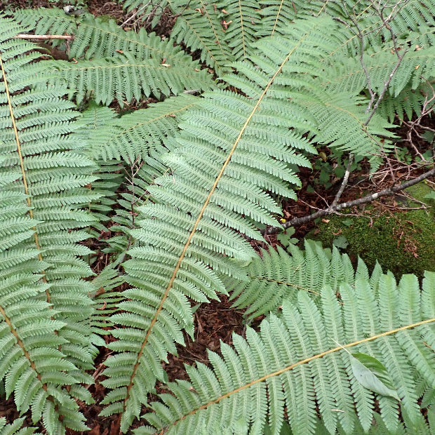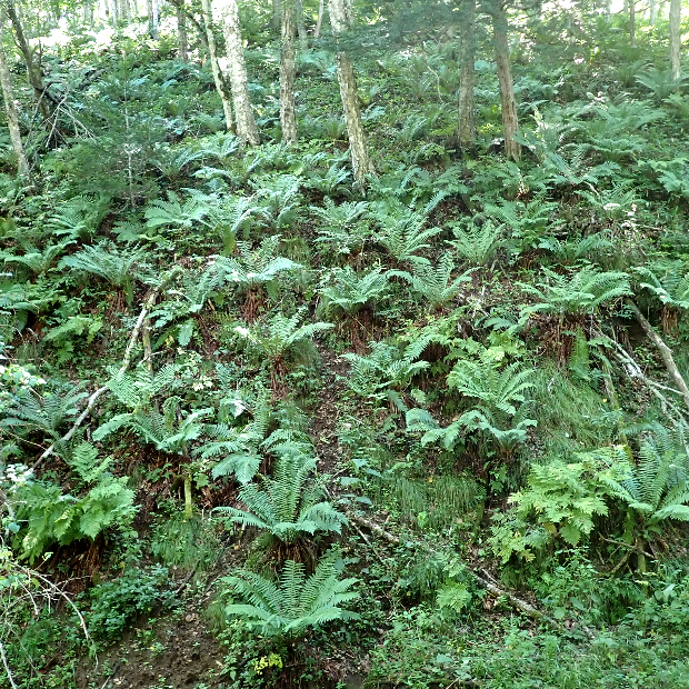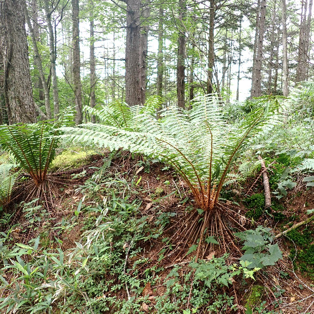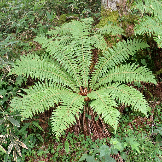山地に生える代表的なシダです。 1か所からたくさんの葉を出して群生する姿は圧巻の一言!その豪快な姿から雄シダと名付けられました。