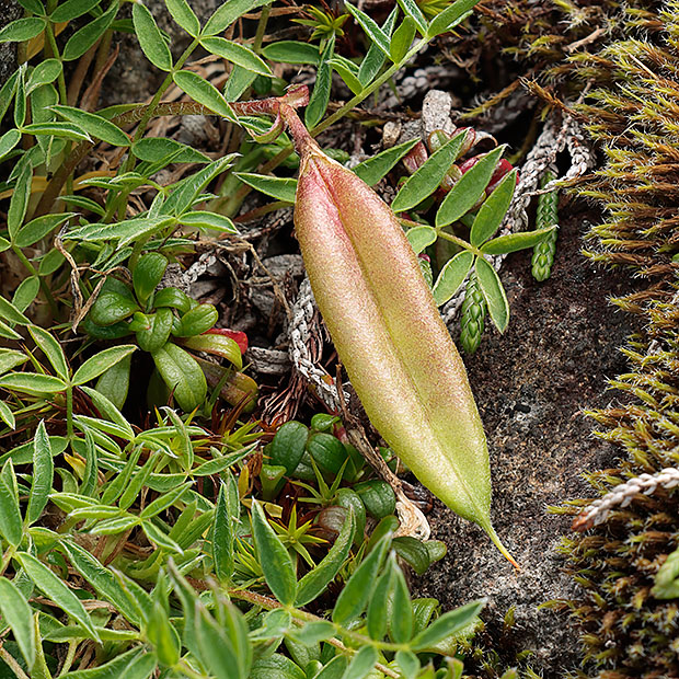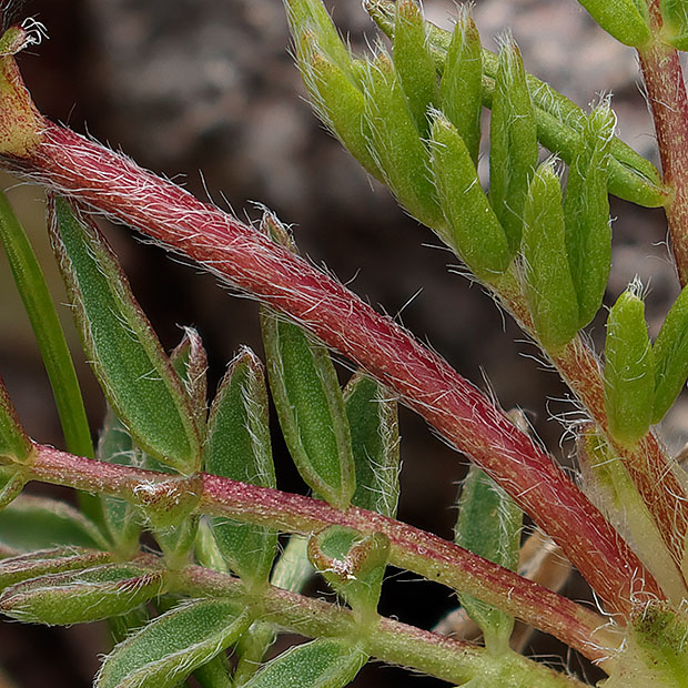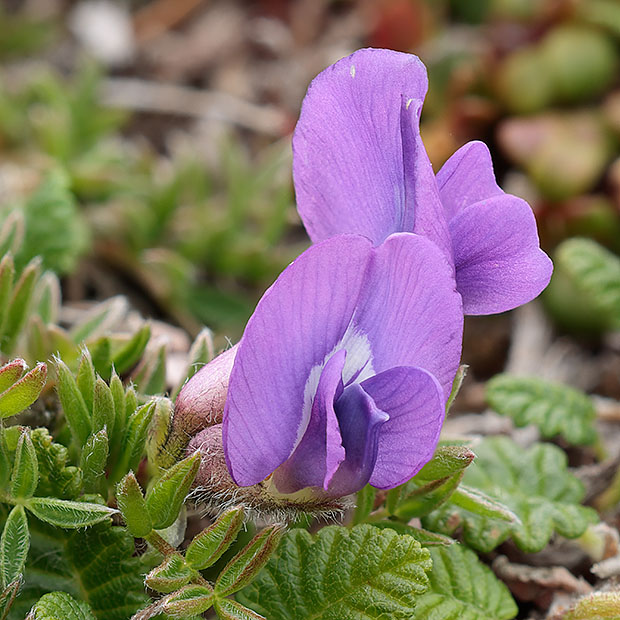 ゲンゲ(レンゲソウ)の1個1個の花と形がにていますが、 まんなかにある花びらの先端はとがります。