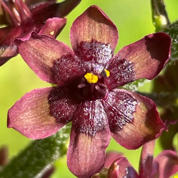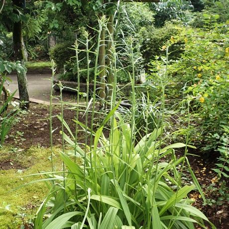 葉は茎の下部につき、 長さ20~30センチの幅広で、 縦に筋がある。 葉の基部が鞘状に茎を包み、 それが腐ると シュロ の毛のようになることから、 シュロソウと命名されました。