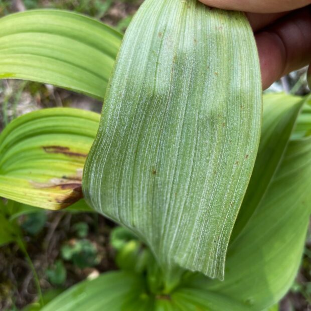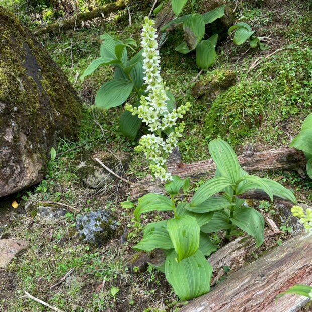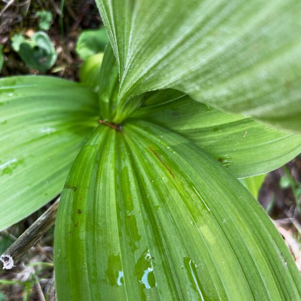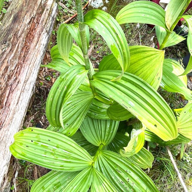 山菜として人気のオオバギボウシ(うるい)と間違えて、 バイケイソウの葉を食べる事故が増えています。 葉脈の形、 葉の付き方など、 違いをしっかりと見極めるようにしましょう。