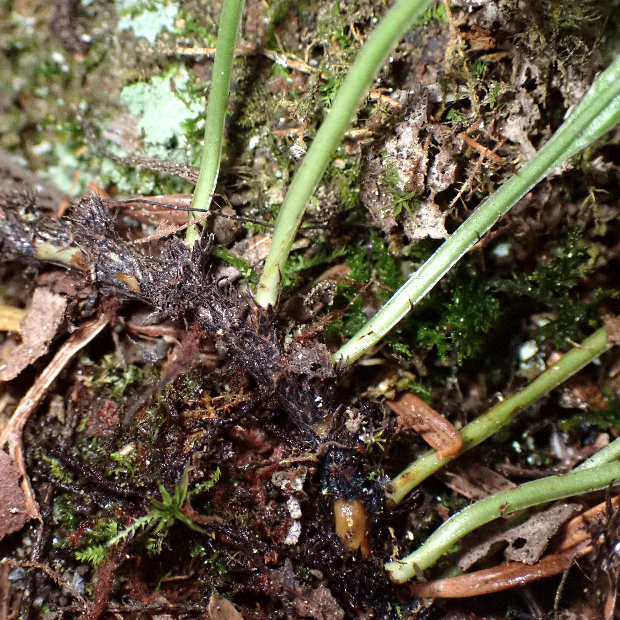 本州中部の涼しい山地に生えるノキシノブの仲間のシダ。 葉はノキシノブより細長く伸び、 根茎が長めに地面をはいます。