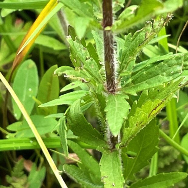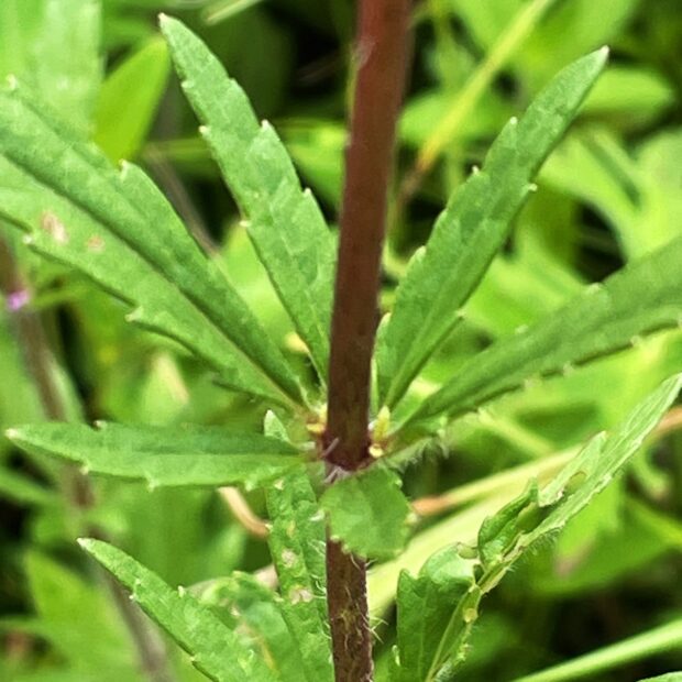 ヒヨドリバナ : 単葉で裂けず、 柄があり、 左右の葉が対につく。