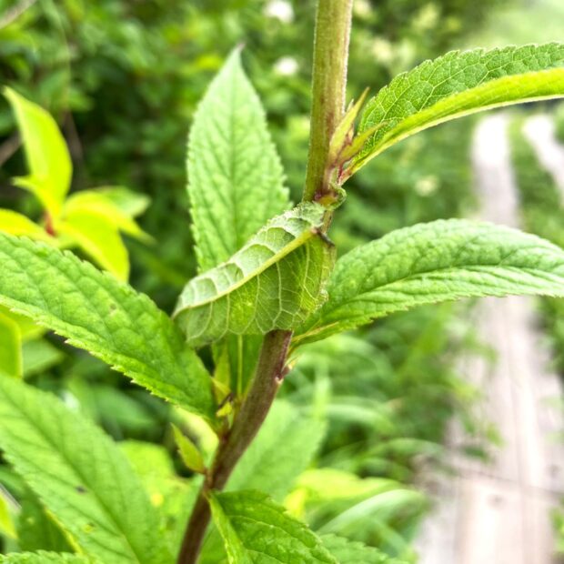 葉が4個輪生するのでヨツバヒヨドリと名が付けられたが、 実際は3-7個と幅がある。