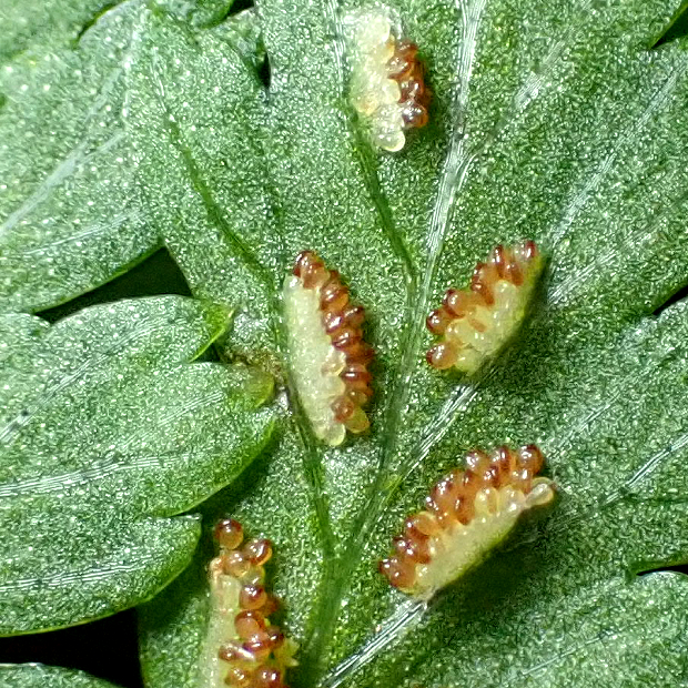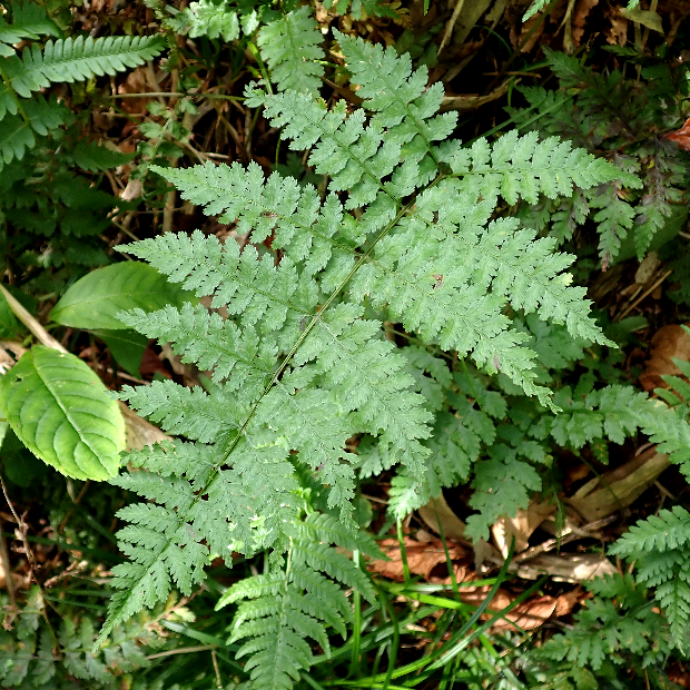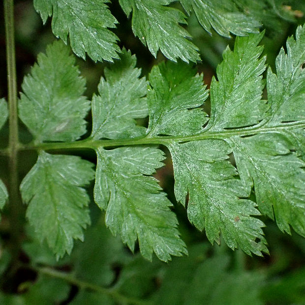 越国(こしのくに)は現在の北陸地方のことで、 主に中部地方より東の日本海側に分布します。 サトメシダよりも葉の切れ込みは浅く、 包膜のフチは粗く切れ込みません。 日本固有種です。