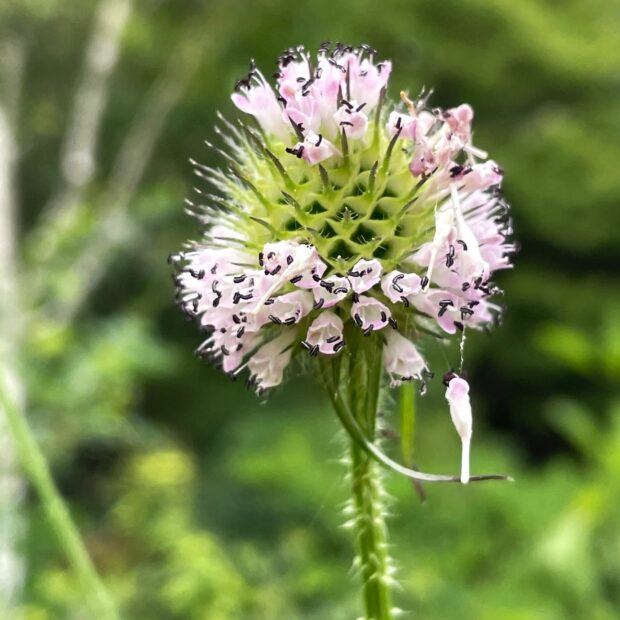 淡紅紫色の花をまばらにつける。