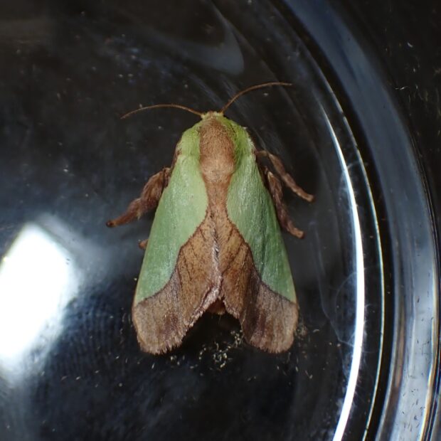 普通に見られるイラガの仲間。 南方からやって来た外来種で、 都市部の公園などでも見られます。