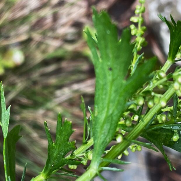ヨモギとよく似ていますが大型で、 葉に毛がありません。 山道などに多く生えます。 花が咲いていないように見えることからオトコヨモギと名前がつきました。 カゼ,咳,口内炎,できもの,湿疹,黄疸などの薬として全草、 活用される優れものです。