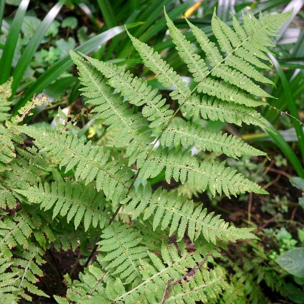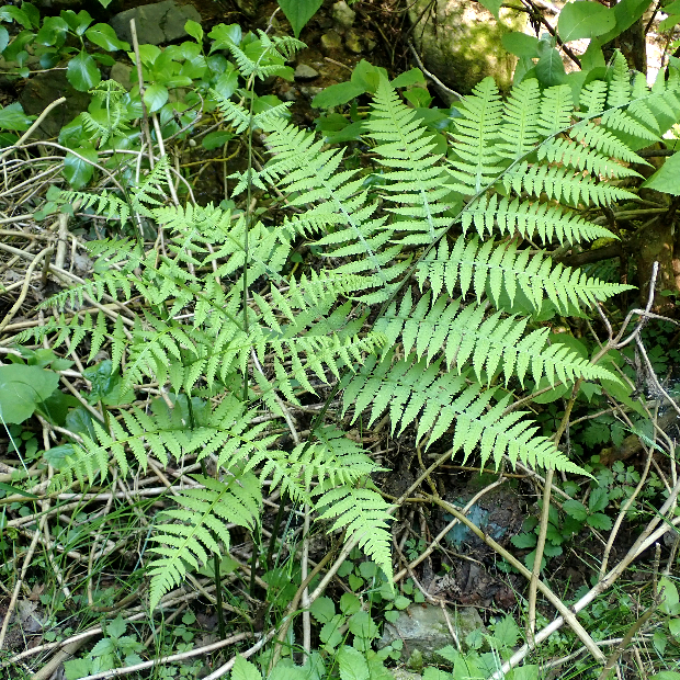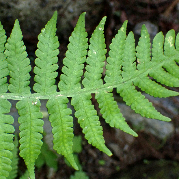 深く切れ込んだやわらかい葉が特徴のシダ。 名前はヒメワラビより大きくなることに由来しますが、 実際にはそこまで大きさに差がないほか、 ヒメワラビと分類が大きく異なります。