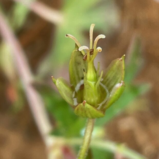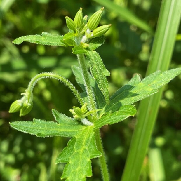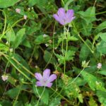 花は茎頂や枝先に仲良く、 2個ずつ咲く。 周りの草に負けないように花柄を伸ばす様子がかわいらしい。