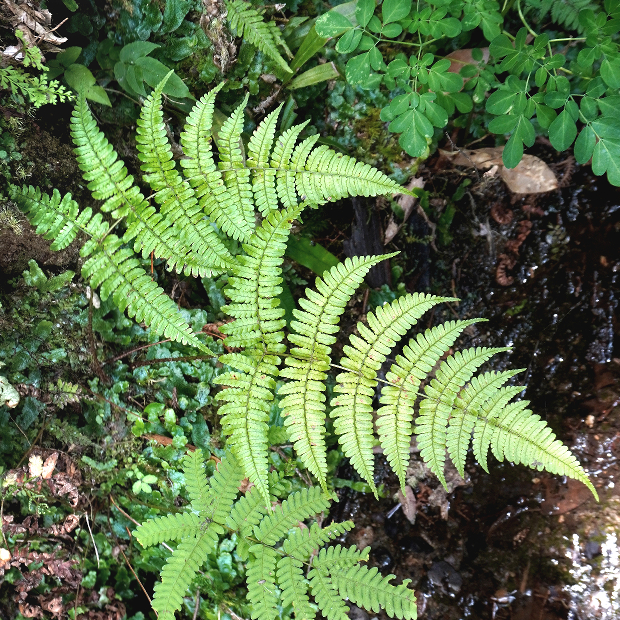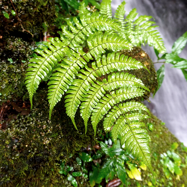 下の葉はニシノコハチジョウシダ。