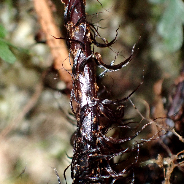 黒色っぽい細めの鱗片が多い。