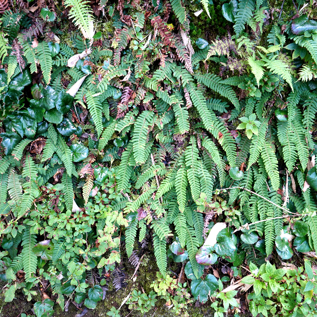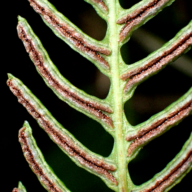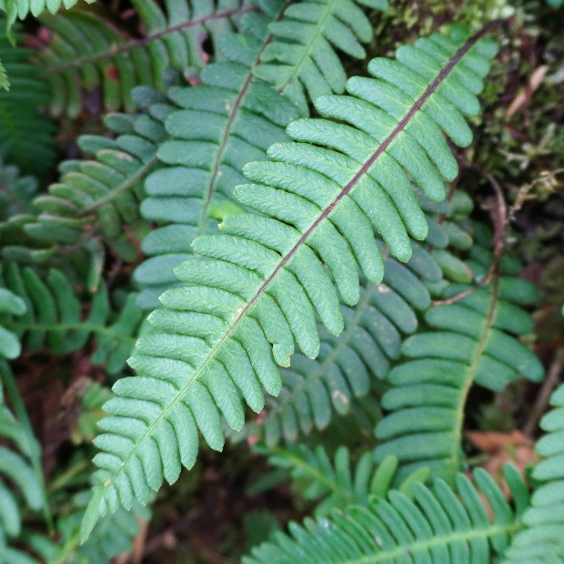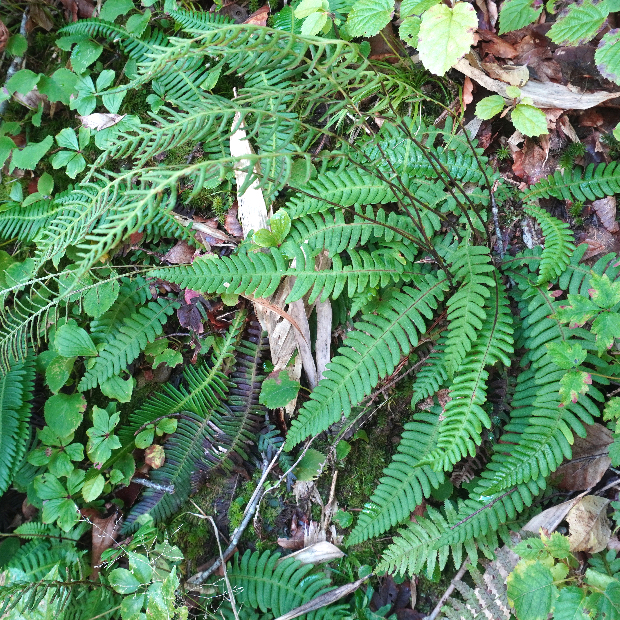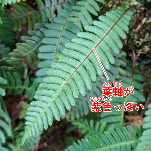 日本海側の多雪地に生えるシダ。 シシガシラによく似ていますが、 葉の下半分の葉軸が紫色っぽいこと、 羽片が幅広くて先が丸いこと、 胞子葉が栄養葉より2倍長いことなどで異なります。 日本固有種です。