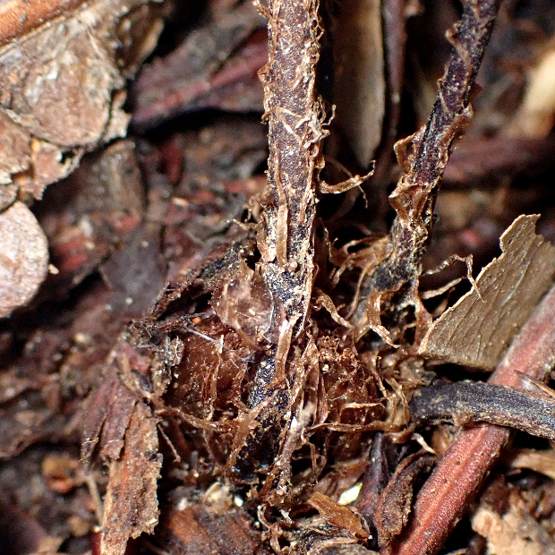 ミヤマシシガシラは常緑性なので、 栄養葉は雪の重さに耐えるために地面に伏せるようにして生えます。