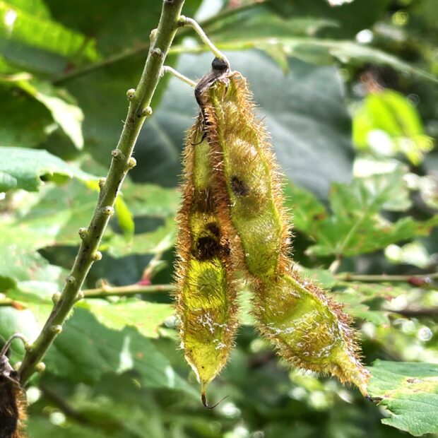 • 秋になるとたくさんの果実を付ける。 豆もたくさんの毛でおおわれる。