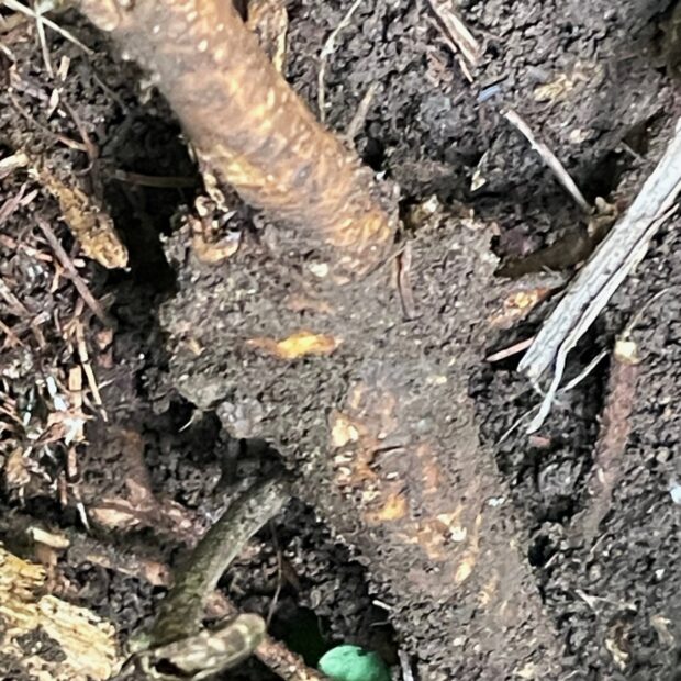 • 根っこを掘り起こすと太い根が出てくる。 根っこを砕いて、 粉末にして、 葛湯の元を作る。
